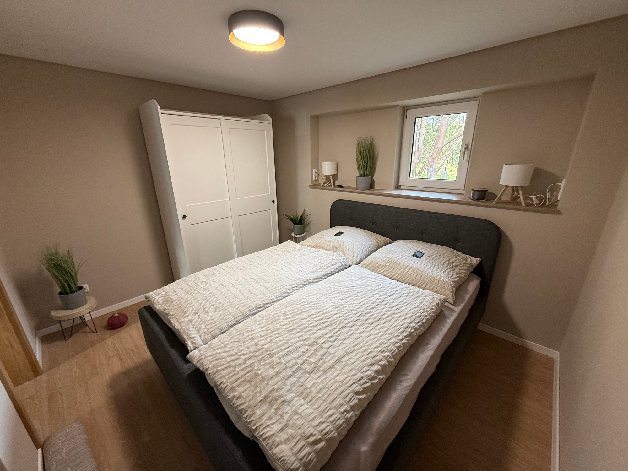 Das Ferienhaus bietet Platz für 2 bis 5 Personen und verfügt über zwei Schlafzimmer mit jeweis einem Doppelbett, sowie einer Schlafcouch im Wohnzimmer.